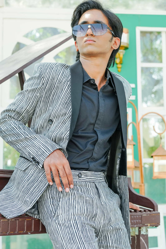 Elevate your style with our Black and White Stripes Double Breasted Tuxedo Suit, tailored to...
