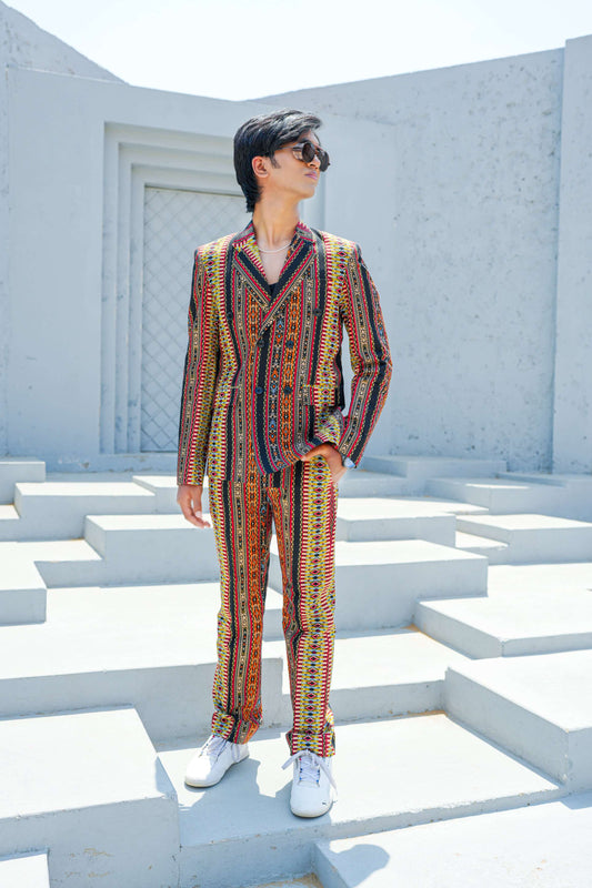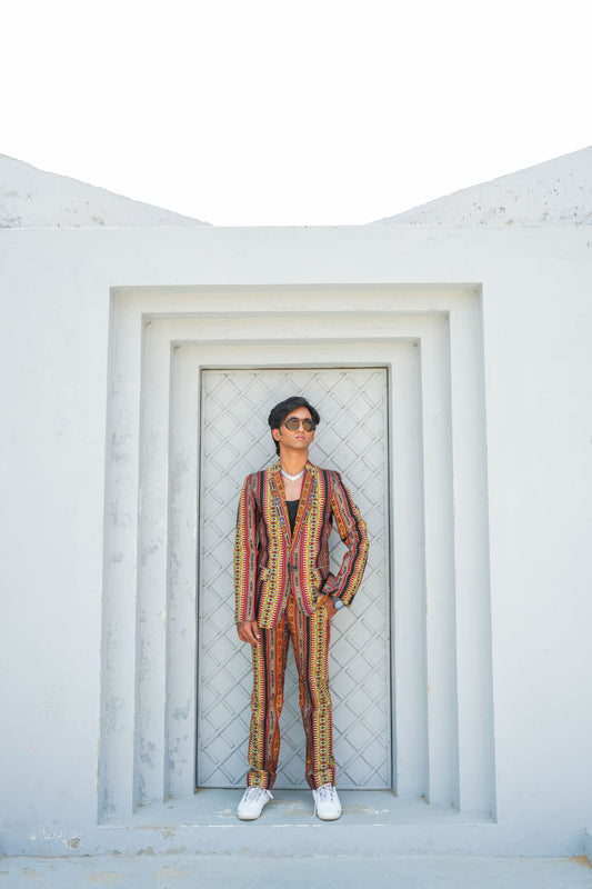 Elevate your style with our Colorful Bandhani Print Double Breasted Suit. The unique and vibrant...